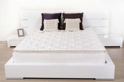 Ну и конечно, белая спальня не обойдется без мебели, которая может быть полностью белоснежной или с темными вставками. Из мебели понадобится: просторная и мягкая кровать с ортопедическим матрасом, шкаф-купе, прикроватные тумбочки, туалетный столик, несколько пуфиков. На стене в области спинки кровати, можно расположить стеклянное полотно, выполненное по технологии фотопечати с изображением пламени огня или нежных, оранжевых цветочков.