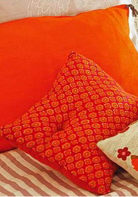 Покрывало и декоративные подушки на кровати, могут стать яркими аспектами всего помещения. Прекрасно будет смотреться оранжевый цвет, символизирующий пламя.