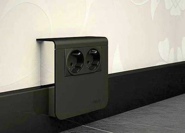 Также есть вариант с установкой розеток прямо на уровне плинтуса. Для пожилых людей этот вариант не лучший, а для молодежи низкие наклоны не проблема. Зато не так привлекает внимания.