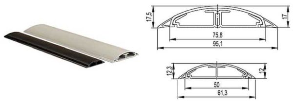Этот тип кабельных коробов отличается и формой с способом монтажа. Он устанавливается на пол, потому с одной стороны имеет округлую форму, благодаря чему не мешает передвигаться. Выпускается из ударопрочного пластика или алюминия. Форма при этом одинаковая.