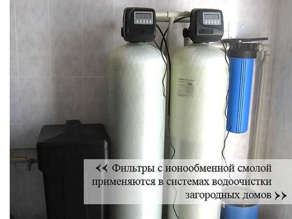 Для умягчения воды используют фильтры с ионообменными смолами. В процессе взаимодействия с водой происходит замена вредных примесей на нейтральные или полезные (увеличение количества йода и фтора).