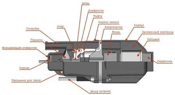Диафрагма в вибрационном насосе создает колебания воды