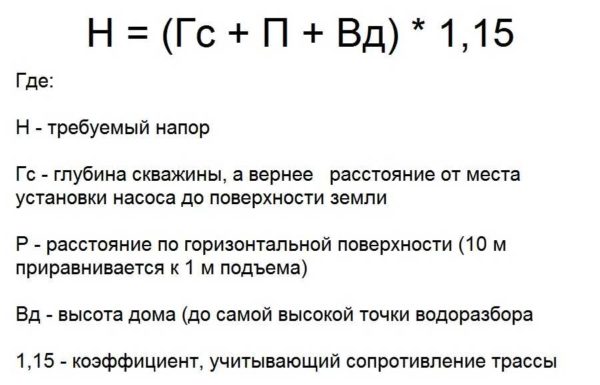 Формула расчета напора насоса