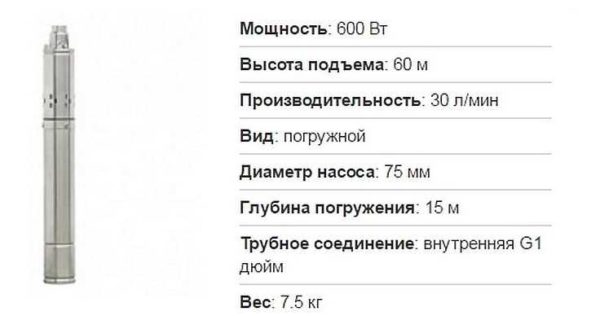 Краткие технические характеристики насоса для скважины