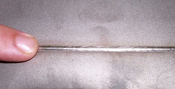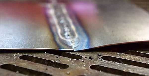 Так выглядит шов при сварке тонкого металла встык с проложенной снизу термоотводящей проволокой