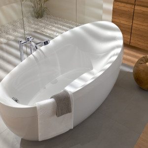 Помните, что ванны прямоугольной формы позволяют экономить воду, а отдельностоящие модели – экспериментировать с интерьером.
