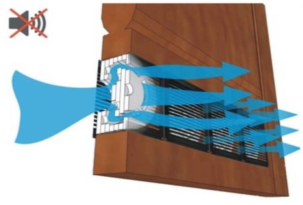 Обычные вентиляционные решетки представляют собой планки расположенные под некоторым углом. Они могут быть расположены в один или два ряда, могут иметь форму буквы V. Это все меняет направление потока воздуха и скорость его движения, но на прохождении звуков никак не сказывается. И такие вентрешетки не являются преградой для распространения звуков, что в квартире или доме далеко не всегда приемлемо, так как хорошая шумо и звукоизоляция — один из важных параметров комфорта. Потому для установки в двери, между комнатами, на приточных каналах с улицы имеет смысл ставить вентиляционные решетки с шумопоглощением.