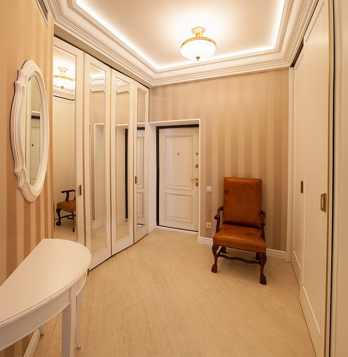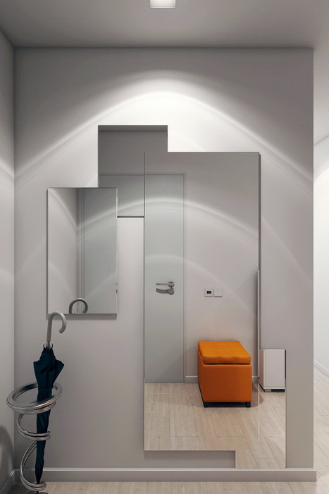 Таким же образом можно раздвинуть узкий коридор, сделав одну из длинных стен зеркальной.