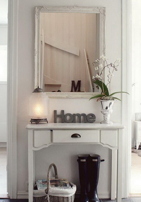 Зеркало — самый необходимый предмет мебели в прихожей. Выходя из дома, мы должны быть, уверены, что с одеждой всё в порядке, и мы выглядим отлично. Так как большинство наших прихожих грешат малыми площадями и узкими коридорами, поэтому при помощи зеркала мы ещё можем изменить восприятие пространства.