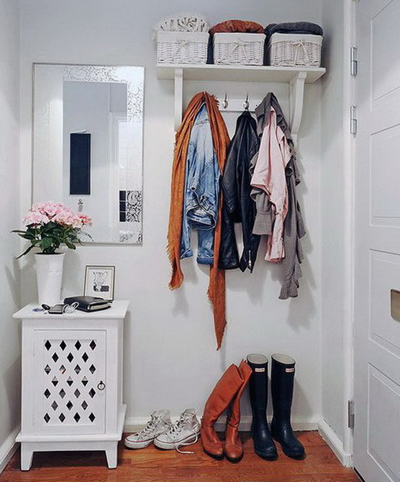 По этой же причине логично будет совместить несколько элементов интерьера. Мы стараемся приобретать многофункциональные вещи в маленькие прихожие. Зеркало в прихожую обычно объединяют с полкой, вешалкой для одежды, тумбой для обуви, консолью, пуфом или скамьёй.