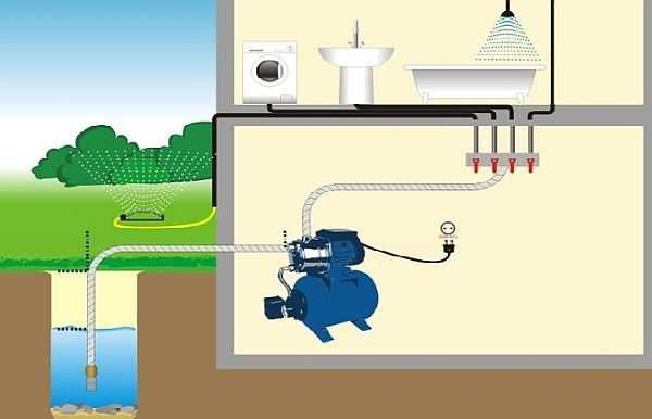Схема водоснабжения частного дома с насосной станцией с поверхностным насосом