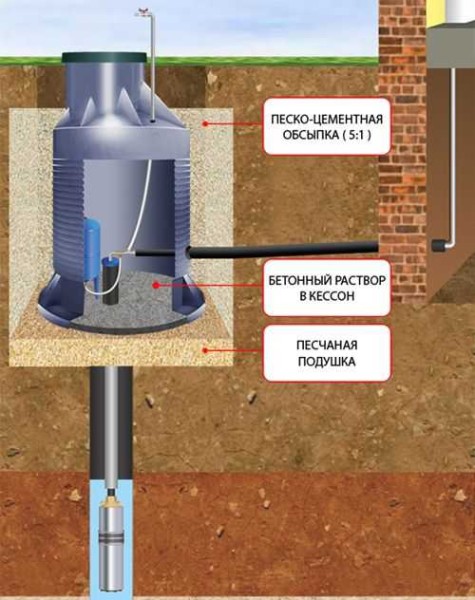 Схема установки станции для водоснабжения частного дома в кессоне