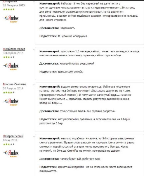 Отзывы о насосных станциях Grundfos для водоснабжение дома или дачи (чтобы увеличить размер картинки, щелкните по ней правой клавишей мышки)
