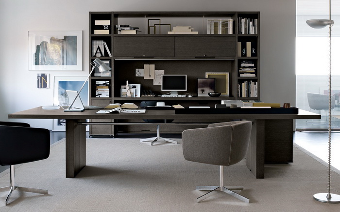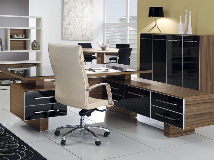 Кабинет лучше всего оформить так, чтобы все нужные бумаги всегда были под рукой. Остановите свой выбор на удобных и многофункциональных шкафчиках с большим количеством полок. Определившись с маркой производителя, уточните, из каких материалов производится мебель. Продукция должна быть максимально экологичной, то есть не оказывать вредного воздействия на здоровье людей. Как правило, качественную мебель производят из натуральных или из безопасных искусственных материалов. Столы, кресла и шкафы, изготовленные из натурального дерева и кожи недешевы, но такая мебель отлично украсит Ваш офис, придаст ему солидный вид. Если же Ваш выбор пал на продукцию из искусственных материалов, убедитесь, что они прошли проверку на безопасность.