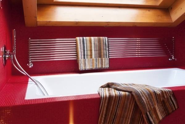 В то же время, электрический полотенцесушитель имеет свои недостатки. Он прогревает полотенца и халаты хуже, чем это делает водяной. Как правило, нагревается только та часть, которая соприкасается с трубой. Поэтому ткань лучше не развешивать на нем, а складывать в несколько слоев.