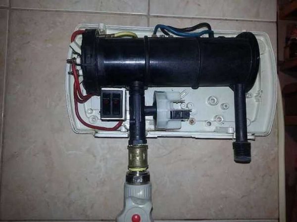 • Бачок с нагревательным элементом. Небольшая емкость, внутри которой располагается нагревательный элемент, изогнутый в виде спирали. Именно тут происходит нагрев воды.