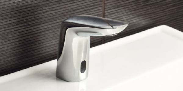 Сенсорные смесители для раковины в ванную комнату — это инновационное решение, которое позволяет полностью отказаться от регулировочных вентилей. Принцип действия такого смесителя основан на работе инфракрасного датчика, который посылает сигнал на запирающий клапан. В зависимости от конкретной модели, поток воды будет литься определённое заданное время, либо до тех пор, пока руки находятся в зоне действия датчика. Что касается регулировки напора воды и её температуры, то они задаются специальными винтами на корпусе крана снизу.