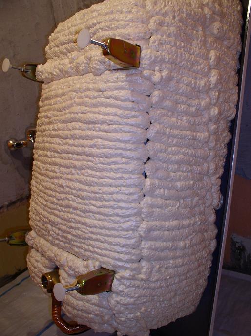 Слой монтажной пены, нанесенный на ванну снаружи, является отличным звуко- и теплоизолятором.