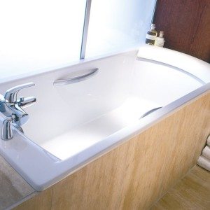 • Встраиваемые ванны – более привычные нам модели. Наружные стенки такой ванны скрываются под отделкой, специальным экраном для ванной комнатыили же облицовочной плиткой.