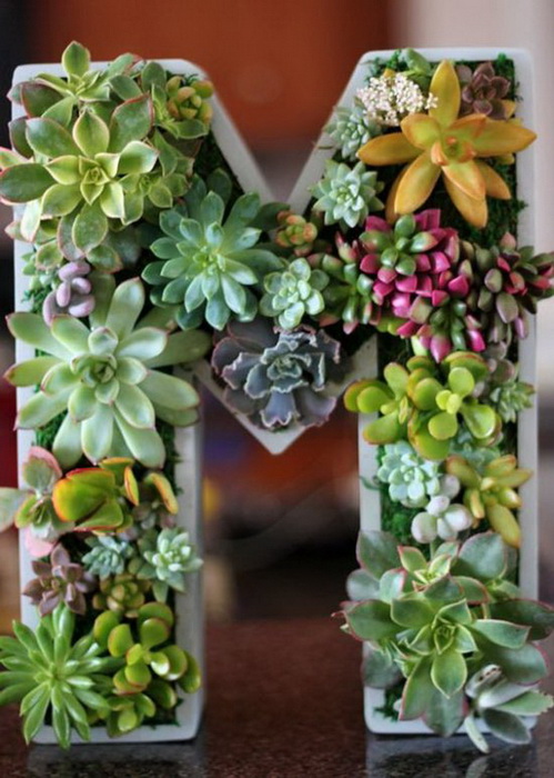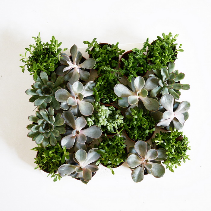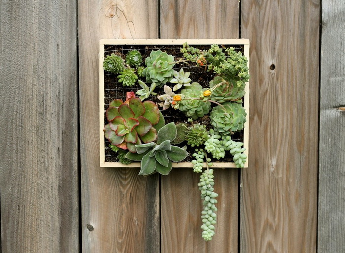 Дизайнеры часто используют суккуленты для создания «живых» панно на стенах. Конструкция представляет собой короб с сеткой вместо одной из сторон. Под сеткой которой находится торф с добавлением мха и коры. В ячейки садятся растения и начинают разрастаться сами по себе. С поливом не будет никаких сложностей: достаточно иногда обильно опрыскивать. Такое панно будет всегда ярким, свежим и не надоест, ведь будет постоянно разрастаться, менять окрас и радовать глаз цветением.