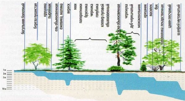 Приблизительно оценить, на какой глубине находится верховодка, можно по растущим над ней растениям. Как видно из таблицы, расположенной выше, определенные виды растений нормально себя чувствуют, если вода находится не выше и не ниже определенной глубины. Так и можно приблизительно оценить, насколько глубоко находится вода.