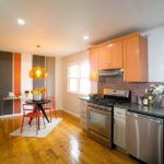 В любом случае наиболее популярная тенденция — окраска одной стены в другой цвет. Это позволяет четко обозначить акценты. На кухне обычно это стена, возле которой стоит обеденный стол, но не обязательно.