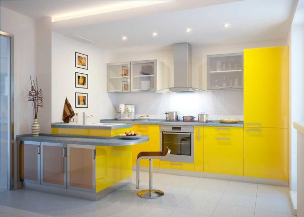 - Сделать стены яркими. Цвет гармонировать с цветом кухонного фасада, а может быть контрастным. Тут зависит от цвета фасада кухни и от того, насколько яркой вы видите свою кухню.