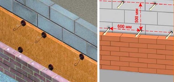 Установка гибких связей при отделке их кирпича с утеплением и без