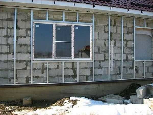 Для обрешетки используют деревянный брус (обработанный антисептиками), металлические направляющие  — оцинкованные профили для гипсокартона или специальные для вентфасадов. Частота расположения обрешетки — 40 см. По такому принципу обшивают фасад из газобетона вагонкой, сайдингом, фасадными панелями.