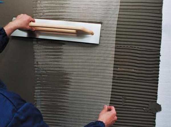 • Наносим слой плиточного клея толщиной в 3-4 мм.