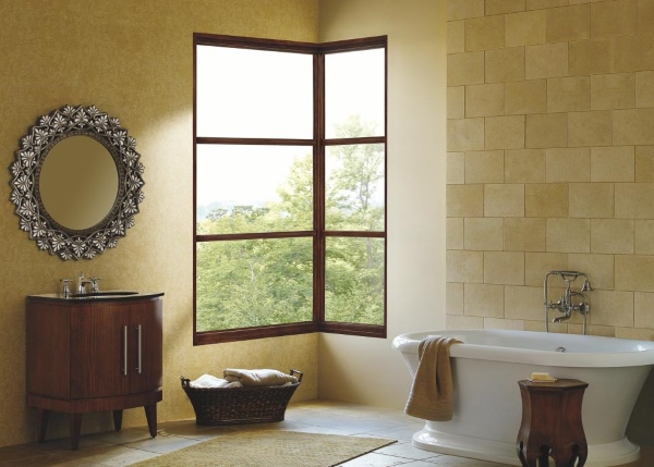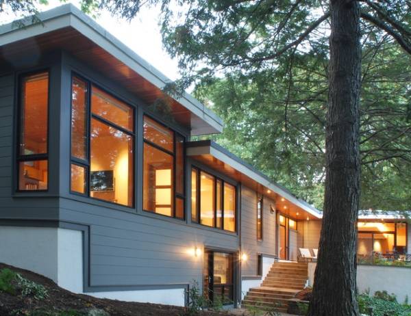 Угловое окно способно придать необычный вид как дизайну интерьера, так и фасаду дома. А какой получается вид!