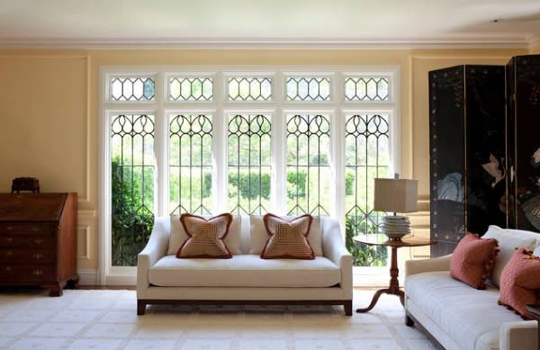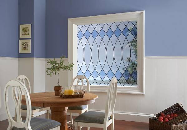 Кроме своей необычной формы и материала рамы, окна в доме могут порадовать вас красивой декоративной отделкой стекол.