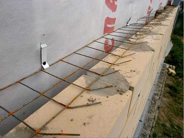 Если делаете сами, то ряды с арматурой класть нужно примерно каждый 5-й ряд. В качестве арматуры кладут специальную сетку я ячейкой 50-50 мм или два продольных прутка арматуры диаметром 6 мм. При этом размер шва что в ряду с армированием, что без должен быть одинаковым.