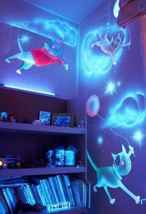 Меловая доска или особые обои для мела подойдут и для игры, и для учёбы. Разрешите рисовать на стене, для этого оклейте часть стены или дверь особой плёнкой, купите маркеры и вперёд.