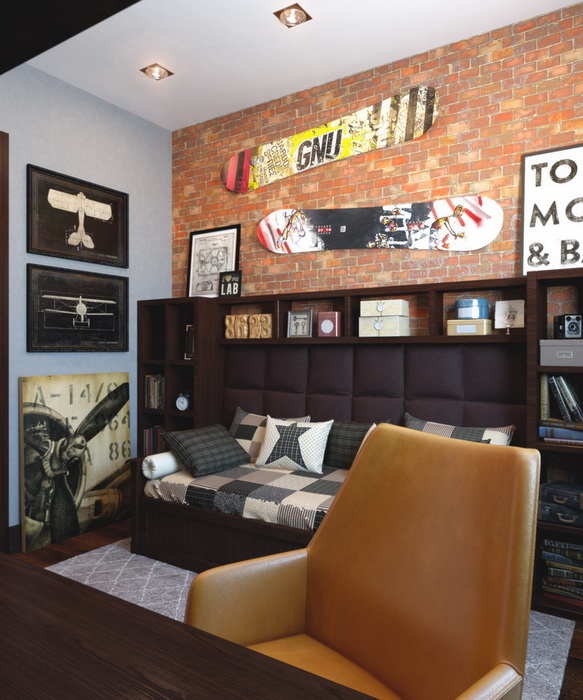Сноуборд, скейт и любимый «велик» могут стать предметами интерьера, и предметом гордости и восхищения для пришедших друзей.