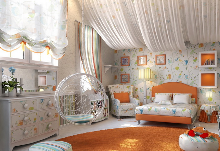 Самое простое изменение в интерьере детской можно сделать с помощью текстиля. Гардины на окнах, покрывало, подушки, ковёр на полу легко поменять и тем самым обновить интерьер, создать новое настроение. Пусть в этом деле ребята будут активными участниками и помощниками. Выберут цвет и материал, придумают и предложат дизайн, поверьте, Вы узнаете их с неожиданной стороны.