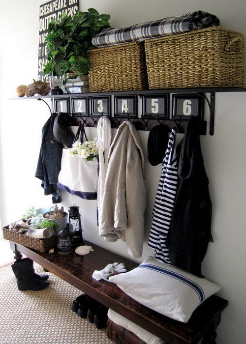 Дизайн прихожей легко обновить с помощью новой вешалки (а если позволяет место — установки компактного шкафчика для верхней одежды). Кроме того, можно повесить на стену небольшой светильник или зеркало в полный рост.