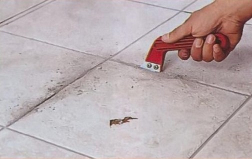 - сначала полностью вычистим швы вокруг нее специальным скребком;