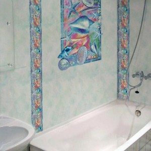 - Любым водостойким материалом (например, пластиком) можно эффектно задрапировать поврежденный участок и наслаждаться новой ванной.