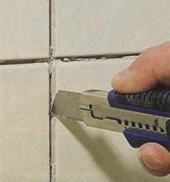 Чтобы не повредить соседние плитки, удаляем затирку из швов