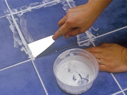 - на освободившемся месте тщательно удаляем остатки старой затирки и клей.