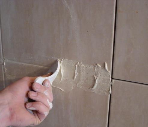 - шпателем полностью удалим старую затирку;
