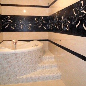 - Зону умывальника и ванны лучше выложить керамикой класса Премиум с последующим ее прочным приклеиванием и даже привинчиванием.