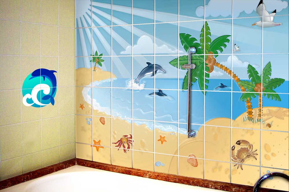 Для оригинального набрызгивания в виде капелек росы или морской воды, точек — звезд можно применить краску для стекла, которая также отличается хорошей адгезией даже без грунтовки. Специальные краски для кафеля, матовые и глянцевые эпоксидные краски также долговечные и влагостойкие. Но перед покраской надо идеально очистить от жира и пыли обрабатываемую поверхность.