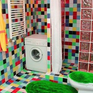 - Выбор рисунка для старого кафеля. Легче всего дается модный геометрический узор: красивые разноцветные штрихи, квадраты или ромбы выглядят современно и вписываются в престижный дизайн ванной.