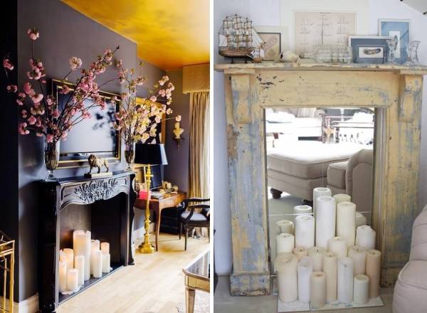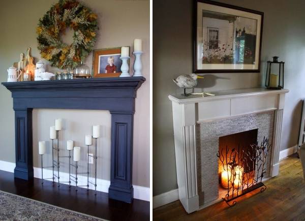 Наверняка среди наших читателей есть те, кто уже имеет хорошую систему отопления, но не против украсить свою гостиную имитацией камина. Фальш-камин в квартире можно сделать своими руками и использовать в качестве полки для книг, подсвечников, фотографий, сувениров и т. д. Также вы можете поставить в него свечи, чтобы создать некоторое подобие очага. Предлагаем вам несколько идей с фото, как создать искусственный камин в квартире.