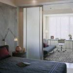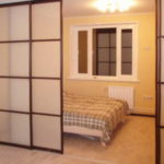 Еще несколько слов о раздвижных ширмах. Они идут отдельным классом, так как не настолько «прибиты к месту», как стационарные перегородки, но и не такие мобильные как переносные ширмы. Очень хороший вариант зонирования гостиной спальни в одно комнате, если хотите иметь уединенный уголок для отдыха.