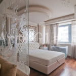 Для современного стиля, минимализма, хай-тека идеально подойдут стеклянные ширмы. Вот только стекло надо выбирать разное. Для хай-тека и минимализма лучший вариант — тонированное с серебристым напылением, напоминающее зеркало. Хорошо будет смотреться белое, молочное, серое — в зависимости от оформления спальни-гостиной. Гостиная спальня в стиле прованс также может быть оборудована ширмой из крашеной фанеры. Но если вам не по душе слишком «сельский» вариант, можно вписать стеклянную ширму с фотопечатью. Выбрать можно один из пейзажей, которые характерны для юга Франции, использовать цветное стекло с растительным орнаментом.