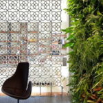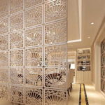Узорная пластиковая перегородка визуально отделяет зоны одну от другой
