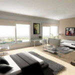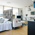 Для оценки вариантов зонирования вручную, понадобится план помещения с размерами начерченный в масштабе. На нем отобразите где находятся окна, двери (тоже с размерами). Дальше надо продумать где бы вы хотели поставить кровать, где — диван для гостей. Для гостиной-спальни это два ключевых предмета, которые стараются поставить в первую очередь. Их лучше вырезать из картона, причем тоже в масштабе. Из картона надо будет еще вырезать ту мебель, которая необходима и должна быть обязательно. Если ее еще нет, вырезайте тех размеров, которые вы хотите. Затем можно будет внести корректировки.